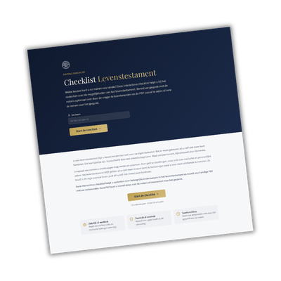 Download de checklist levenstestament (PDF, opent in nieuw venster) om uw wensen op papier in kaart te brengen.